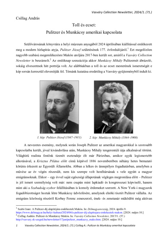 Csillag András - Toll és ecset: Pulitzer és Munkácsy amerikai kapcsolata -