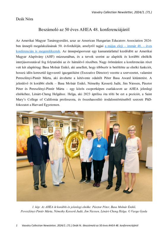- Vasváry Collection Newsletter 2004/1 (71.)