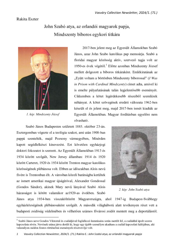 Rakita Eszter - John Szabó atya, az orlandói magyarok papja, Mindszenty bíboros egykori titkára -